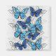 Vertical composition of realistic, blue and white morpho butterflies on grey textured background. Morpho blue butterfly.