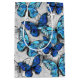 Vertical composition of realistic, blue and white morpho butterflies on grey textured background. Morpho blue butterfly.