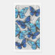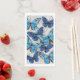 Vertical composition of realistic, blue and white morpho butterflies on grey textured background. Morpho blue butterfly.