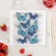 Vertical composition of realistic, blue and white morpho butterflies on grey textured background. Morpho blue butterfly.