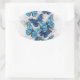 Vertical composition of realistic, blue and white morpho butterflies on grey textured background. Morpho blue butterfly.