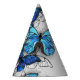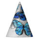 Vertical composition of realistic, blue and white morpho butterflies on grey textured background. Morpho blue butterfly.