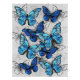 Vertical composition of realistic, blue and white morpho butterflies on grey textured background. Morpho blue butterfly.