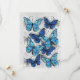 Vertical composition of realistic, blue and white morpho butterflies on grey textured background. Morpho blue butterfly.