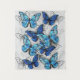 Vertical composition of realistic, blue and white morpho butterflies on grey textured background. Morpho blue butterfly.