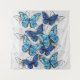 Vertical composition of realistic, blue and white morpho butterflies on grey textured background. Morpho blue butterfly.