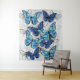 Vertical composition of realistic, blue and white morpho butterflies on grey textured background. Morpho blue butterfly.