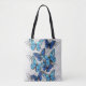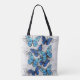 Vertical composition of realistic, blue and white morpho butterflies on grey textured background. Morpho blue butterfly.