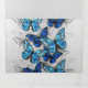 Vertical composition of realistic, blue and white morpho butterflies on grey textured background. Morpho blue butterfly.