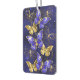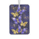 Composition of luxurious sapphire and gold jewellery butterflies on blue textured background.