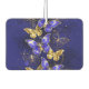 Composition of luxurious sapphire and gold jewellery butterflies on blue textured background.