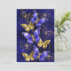 Composition of luxurious sapphire and gold jewellery butterflies on blue textured background.