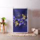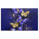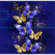 Composition of luxurious sapphire and gold jewellery butterflies on blue textured background.