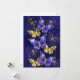 Composition of luxurious sapphire and gold jewellery butterflies on blue textured background.