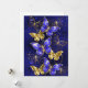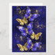 Composition of luxurious sapphire and gold jewellery butterflies on blue textured background.