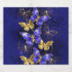 Composition of luxurious sapphire and gold jewellery butterflies on blue textured background.