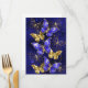 Composition of luxurious sapphire and gold jewellery butterflies on blue textured background.
