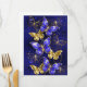 Composition of luxurious sapphire and gold jewelry butterflies on blue textured background.