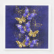 Composition of luxurious sapphire and gold jewellery butterflies on blue textured background.