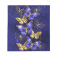 Composition of luxurious sapphire and gold jewellery butterflies on blue textured background.