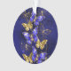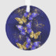 Composition of luxurious sapphire and gold jewellery butterflies on blue textured background.