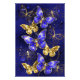 Composition of luxurious sapphire and gold jewellery butterflies on blue textured background.