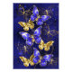 Composition of luxurious sapphire and gold jewellery butterflies on blue textured background.