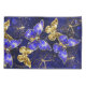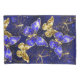 Composition of luxurious sapphire and gold jewellery butterflies on blue textured background.