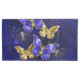 Composition of luxurious sapphire and gold jewellery butterflies on blue textured background.