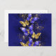 Composition of luxurious sapphire and gold jewellery butterflies on blue textured background.