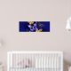 Composition of luxurious sapphire and gold jewellery butterflies on blue textured background.