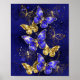 Composition of luxurious sapphire and gold jewellery butterflies on blue textured background.