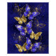 Composition of luxurious sapphire and gold jewellery butterflies on blue textured background.