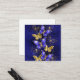 Composition of luxurious sapphire and gold jewellery butterflies on blue textured background.