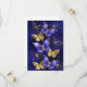 Composition of luxurious sapphire and gold jewellery butterflies on blue textured background.