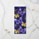 Composition of luxurious sapphire and gold jewellery butterflies on blue textured background.