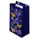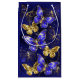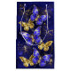 Composition of luxurious sapphire and gold jewellery butterflies on blue textured background.