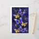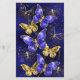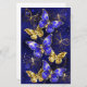 Composition of luxurious sapphire and gold jewellery butterflies on blue textured background.