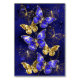 Composition of luxurious sapphire and gold jewellery butterflies on blue textured background.