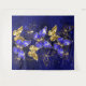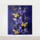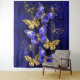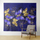 Composition of luxurious sapphire and gold jewellery butterflies on blue textured background.