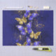 Composition of luxurious sapphire and gold jewellery butterflies on blue textured background.