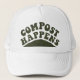 Compost Happens - garden humour cap in distressed green-brown lettering. Choice of hat colours.