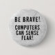 "Be Brave! Computers can sense fear!" Whether you´re a pc beginner or a seasoned geek - watch out for your computer, because they sense your fear and react accordingly! Who says computers are just machines!? Silly geek saying in distressed font.