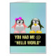 Two cartoon penguins, one pink and one black, holding hands bonding over the basics of computer programming