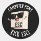 Computer Puns Kick Esc Funny Keyboard Pun Dark BG Classic Round Sticker