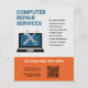 A professional computer repair services flyer with a clean layout featuring a touch of orange color, and including a list of services and a QR Code! The design features an illustration of a laptop computer with a wrench and screwdriver crossed. Perfect for activities such as IT technician, hardware and software support, upgrades, maintenance, and more, either in-store or on-site.