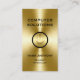 This classy and powerful computer services business card template in a gold metal look on the front with a computer start button symbol is just the presentation you want to make a lasting first impression. Designed for a computer repair service, technician, or security experts.