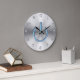 Computers wall decor clock with modern simulated metal background designed to look like a start button on a computer device, with numbers that stand out on the clock face. Designed for a guys room, office wall in an automotive business, or kitchen clock in a ultra modern kitchen decor environment.