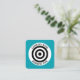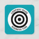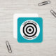 A business card template with a target like symbol made up of concentric circles. The symbol is placed in a white circle with curved text company name and business type with other contact details on the other side. Ready to be customised, suitable for a variety of businesses/uses.