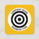 A business card template with a target like symbol made up of concentric circles. The symbol is placed in a white circle with curved text company name and business type with other contact details on the other side. Ready to be customised, suitable for a variety of businesses/uses.